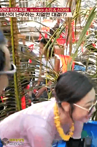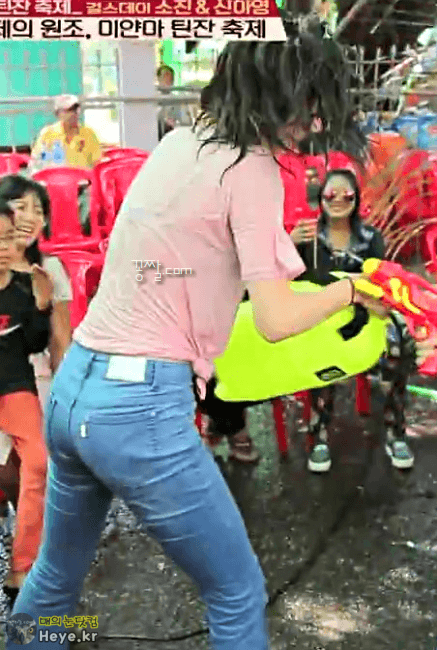미얀마 틴잔 축제에서 집중 공격받는 소진이모